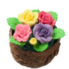 This mini basket of pastel roses is 1/12 scale, which is the most common scale for dollhouses and dollhouse miniatures. It means that if an object is 12 inches in real life, it is sized down to a one inch as a miniature.