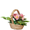 This mini basket of pink flowers is 1/12 scale, which is the most common scale for dollhouses and dollhouse miniatures. It means that if an object is 12 inches in real life, it is sized down to a one inch as a miniature.