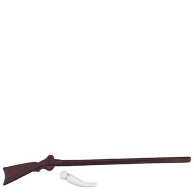 This mini rifle with powder horn is 1/12 scale, which is the most common scale for dollhouses and dollhouse miniatures. It means that if an object is 12 inches in real life, it is sized down to a one inch as a miniature. The rifle measures 4.5" H x .5" W x .5" D.